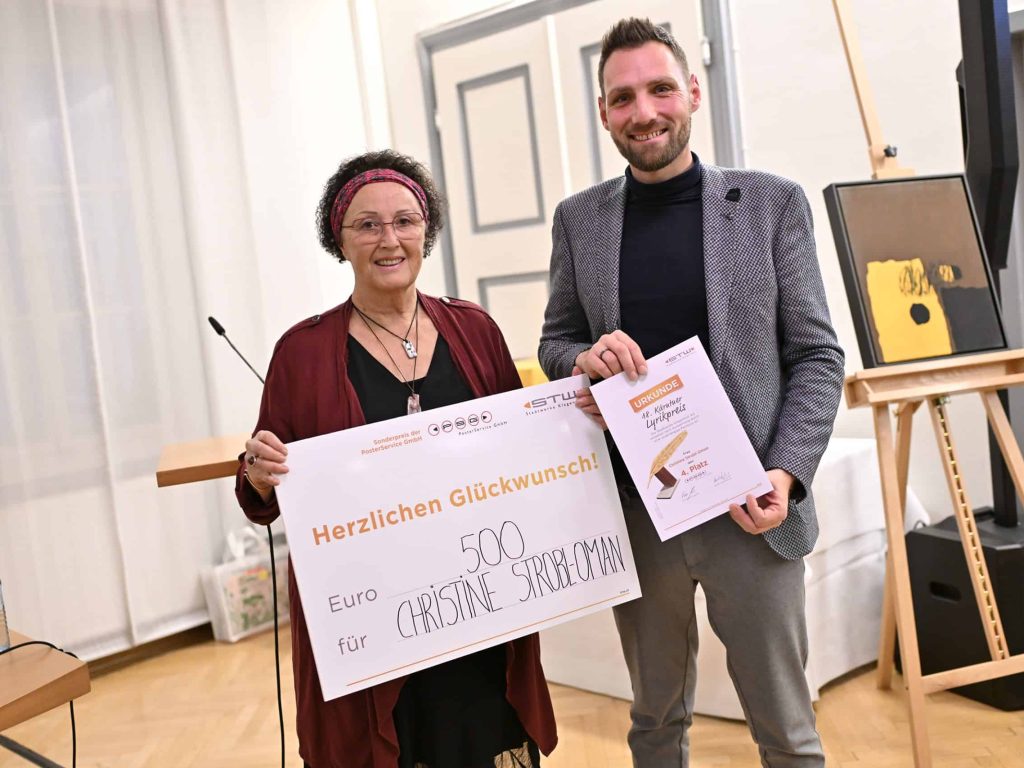 Den Preis der Poster Service GmbH (PSG, 500 Euro) holt sich Dipl. Pädagogin Christine Strobl-Oman aus Rothenthurn, den Preis der Kraftwerkerrichtungs- und Betriebsgesellschaft (KEG, 500 Euro) Mag. Silvia Velik und den Preis des P.E.N.-Club Austria (ebenfalls 500 Euro) Siegfried Gehlhausen aus Irschen, ebenfalls kein Unbekannter bei diesem Literatur-Fest. Der Preis des slowenischen Kulturverbandes geht diesmal an Mag. Dr. Vera Wutti-Incko aus Ferlach. Würdigungspreise erhalten: Anna Fercher, Rebekka Scharf, Katharina Golder-Fillafer, MA; Dagmar Cechak und Valentin Veratschnig.