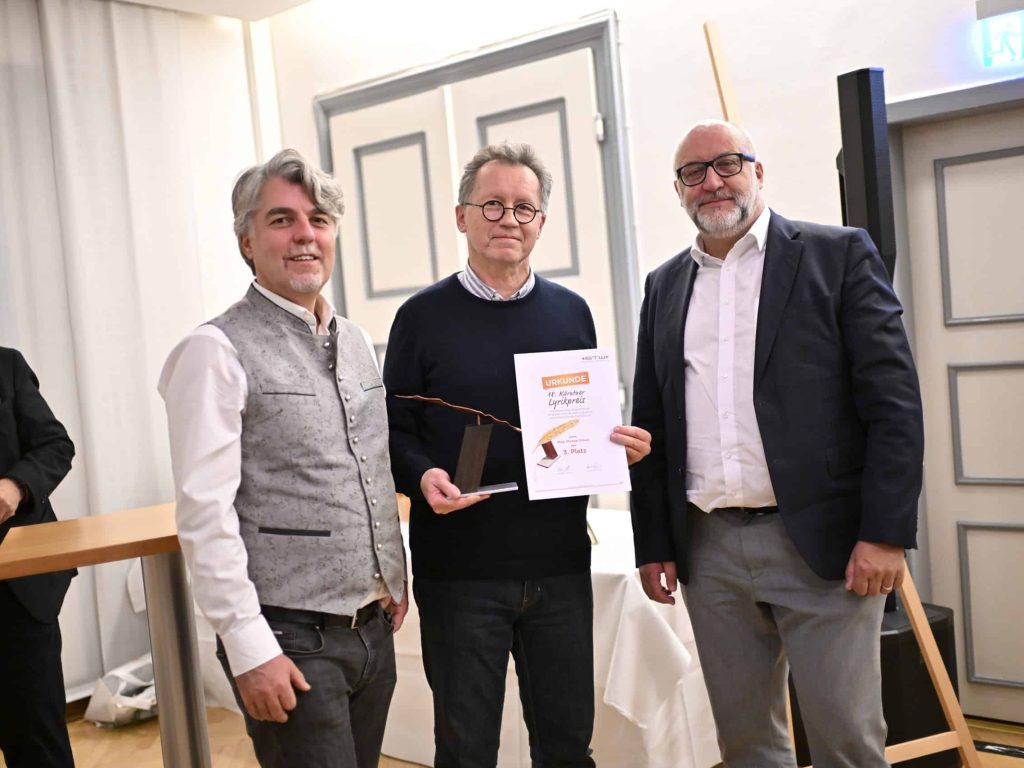 Auf Platz drei findet sich erneut ein „alter Bekannter“ der renommierten Lyrikpreis-Veranstaltung, der schon mehrmals mit Anerkennungspreisen belohnt worden ist: Der in Graz lebende Bleiburger Psychologe Mag. Michael Stöckl, Jahrgang 1964. Stöckl gilt als Initiator der Bleiburger Theatertage und Regisseur einer Bleiburger Kabarettgruppe. 2010 „holte“ sich Stöckl den Lyrikpreis der Stadtgemeinde Bleiburg. Kärntner Lyrikpreis-Initiator Dr. Harald Raffer: „Es gibt Poeten, die mit ihren gefühlvollen Wortkreationen bei diesem Wettbewerb immer wieder punkten können. Nur wer siegt, muss zunächst fünf Jahre pausieren. Die Texte werden alle anonym bewertet.“