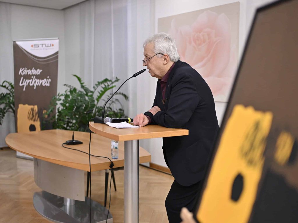 Die unabhängige Jury: Vorsitzender und Autor Dr. Günter Schmidauer, Schriftsteller Dr. h. c. Josef Winkler, Publizistin Ilse Gerhardt, Kulturexpertin Mag. Katharina Herzmansky, Bibliothekarin und Lyrikerin Mag. Cvetka Lipus sowie Autor Dr. Harald Raffer (ohne Stimmrecht). Heuer wurden Texte von 120 Poetinnen und Poeten der deutschen oder slowenischen Sprache begutachtet und bewertet. Teilnahmeberechtigt waren – wie jedes Jahr – Autorinnen und Autoren aus unserem Bundesland bzw. gebürtige im Ausland oder in einem anderen österreichischen Bundesland lebende Kärntnerinnen und Kärntner. Etliche Teilnehmer befassten sich heuer mit den Themen „Krieg“ oder „Hoffnung“.